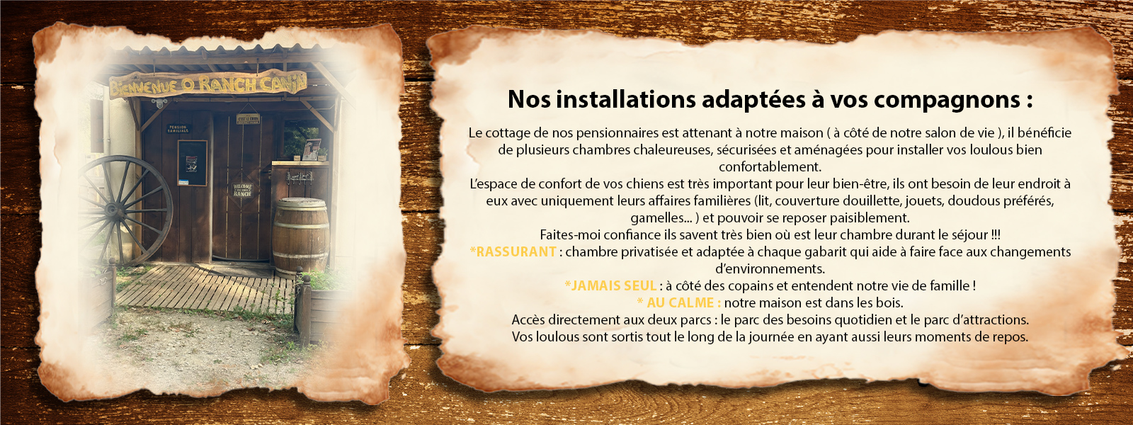 Découvrez mes services de qualité supérieure, visant à combler tous les besoins de vos loulous. Le ranch se situe en Dordogne 24 à Vallereuil à côté de Périgueux, proche de Sarlat, Bergerac, Ribérac, Brive, Montpon et Bordeaux.